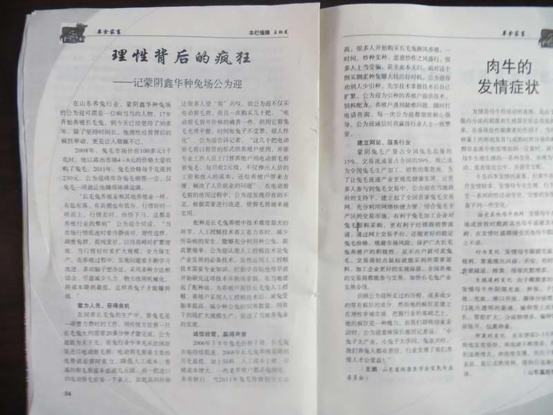 2008年,兔毛市場價在100多元1千克時,他以高出市場4-6元的大量收購了兔毛。2011年,兔毛每千克漲到230元,公為迎將庫存兔毛銷售一空,僅兔毛一項就讓他賺得缽滿盤滿。